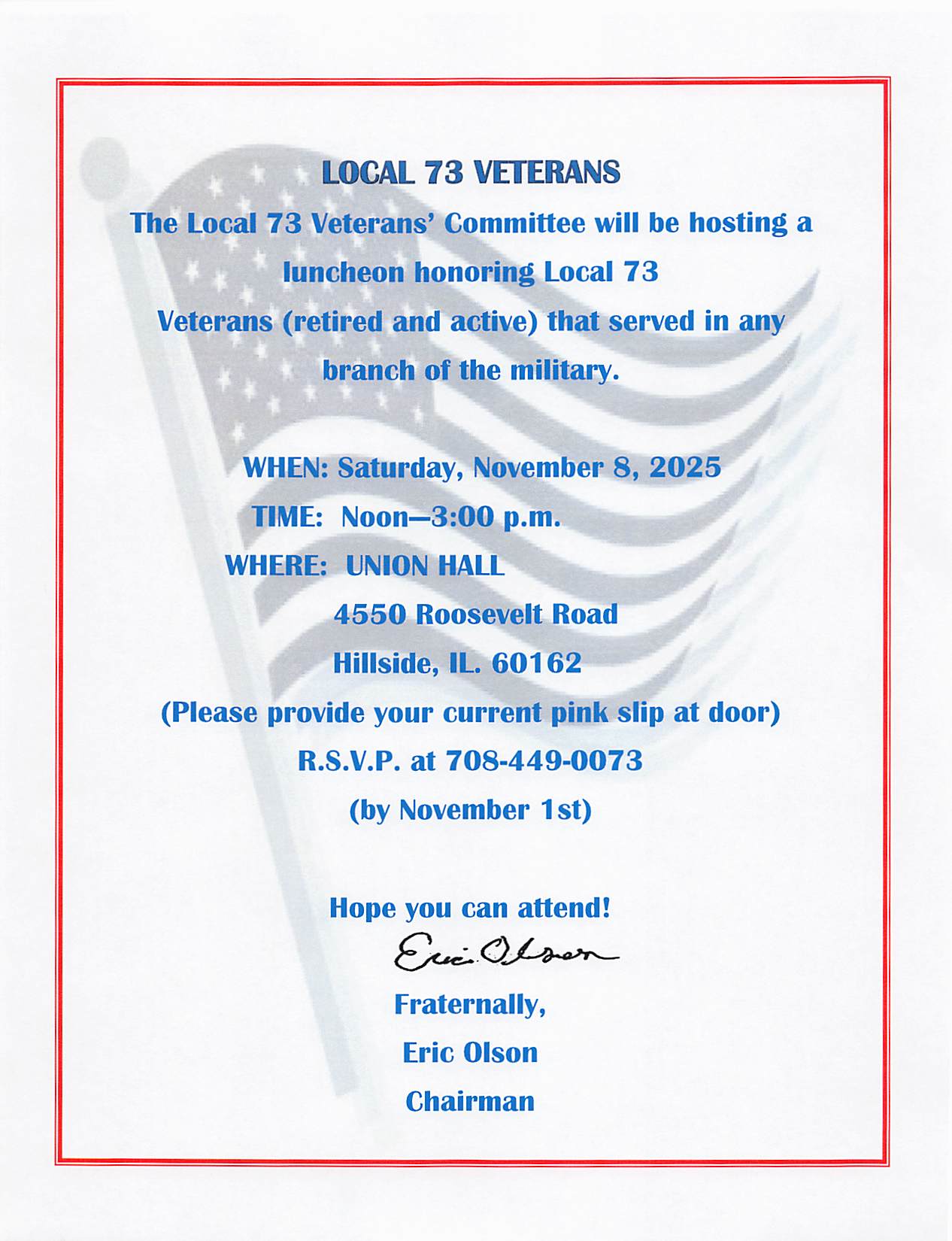 VETERANS DAY LUNCHEON- SATURDAY, NOVEMBER 7, 2025